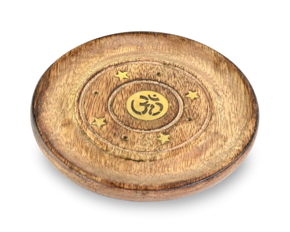 Kulatý stojánek ze dřeva pro vonné tyčinky s bambusovou štěpinou. Zdobený kovovým dekorem.Průměr: 9,5 cm prečítať celé