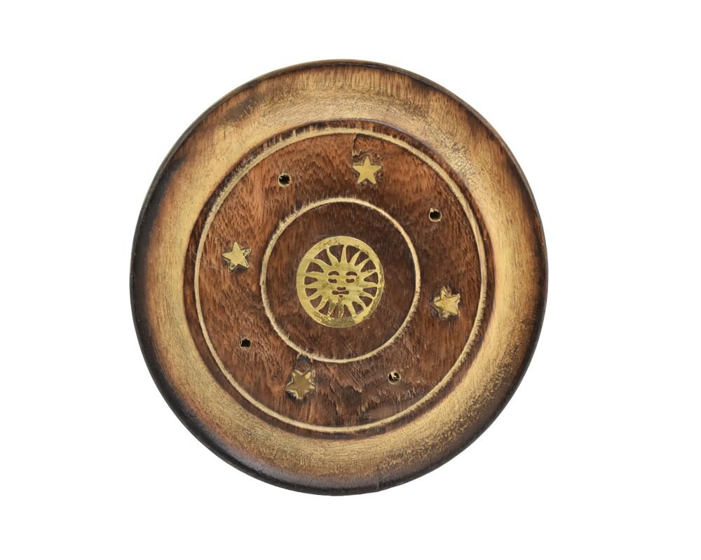 Kulatý stojánek ze dřeva pro vonné tyčinky s bambusovou štěpinou. Zdobený kovovým dekorem.Průměr: 9,5 cm prečítať celé
