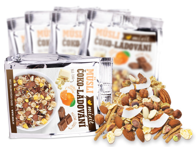 Absolutní čokoládový bestseller od Mixit! 5 pytlíků = 5 porcí připravených na báječnou snídani nebo svačinu. Čoko-ládujte se s Mixit, kombinace mléčné, hořké a bílé čokolády vás dostane do čoko nebe! Složení:kukuřičné lupínky v mléčné čokoládě 31 % (mléčná čokoláda 56 % (cukr, kakaové máslo,...