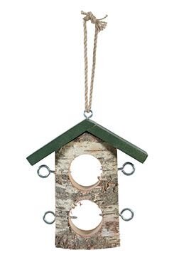 Budka na dvě lojové koule z masivního dřeva o tloušťce 17 mm pro volně žijící ptactvo. Přírodní vzhled dřeva, který splyne se zahradou, dodáváno se silným provazem k zavěšení.