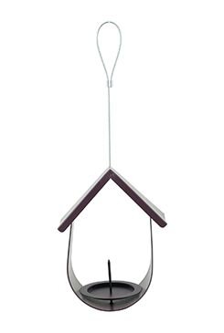 Závěsné kovové krmítko na 1 lojovou kouli, se stříškou a kovovým lankem pro větší odolnost.
