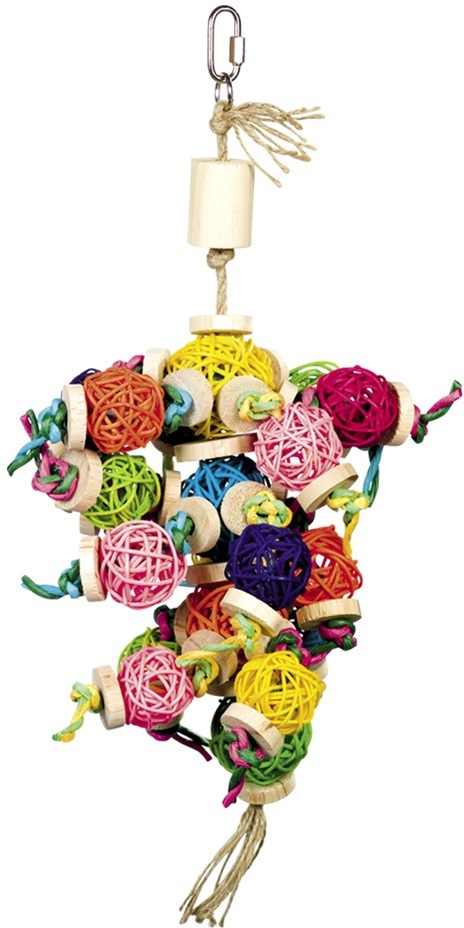 Snadná instalace do klece pomocí kovové karabinky. Celková velikost: 37 x 17 cm Obsahuje zábavné prvky ze dřeva, papíru a proutí. prečítať celé