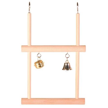 Dvojitá dřevěná houpačka se zvonkem a rolničkou 12x20cm