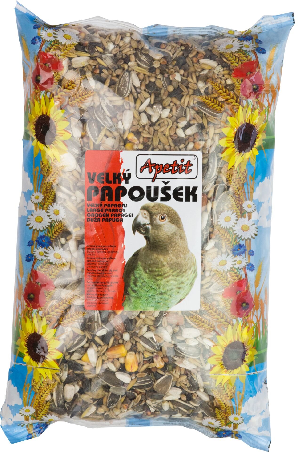 Použití:Zkrmujte papouškům v takovém množství, které spotřebují do druhého dne, zbytek znehodnoceného krmiva vyměňte. Zajistěte stálý přístup k čerstvé pitné vodě. Složení:podzemnice - celá, podzemnice - loupaná, konopí, pšenice, pohanka, oves loupaný, proso červené, čirok, kukuřice, slunečnice...