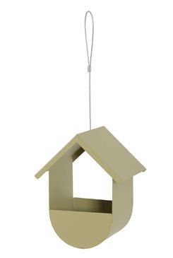 Venkovní kovové krmítko na semínka. Krmítko má stříšku a pevné kovové poutko na zavěšení.