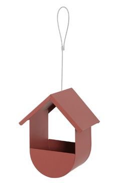 Venkovní kovové krmítko na semínka. Krmítko má stříšku a pevné kovové poutko na zavěšení.