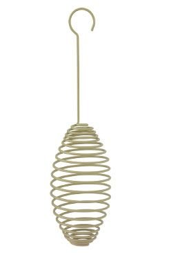 Závěsné kovové krmítko ve tvaru spirály na lojové koule. Výška spirály 15cm.