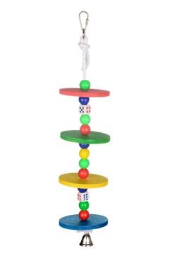 Hračka pro exoty lano s korálky a zvonkem, dřevěná