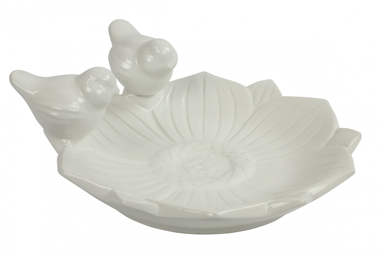 Keramické pítko pro ptáky Fleuri S bílé 27x26x10 cm