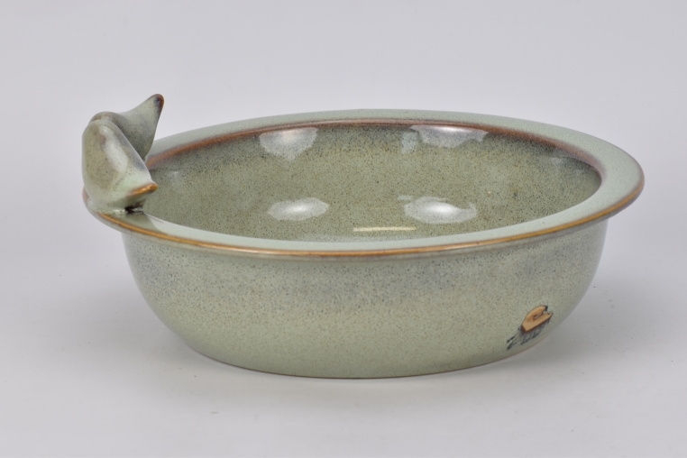 Keramické pítko s ptáčkem 24 cm, zelené II. jakost
