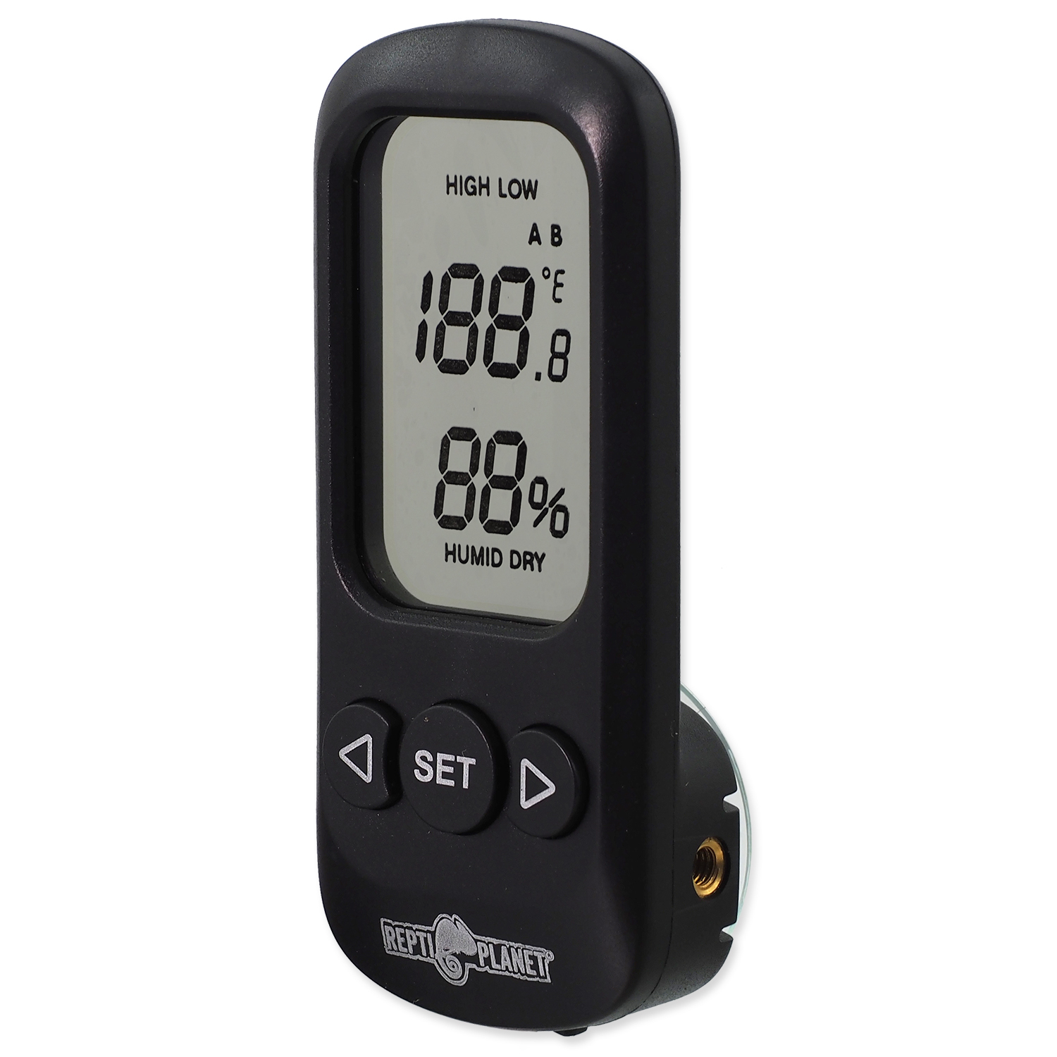 Snadná instalace na skla terária pomocí přísavky. V případě dosažení extrémně nízkých či vysokých teplot vydá přístroj světelný signál. Rozsah měření: teplota: - 20 až 80 °C, (-4 ~ 176 ° F), vlhkost: 10% až 95%. Přesné měření teploty a vlhkosti (přesnost měření: +/- 1 °C (°F), +/- 5% RH)....