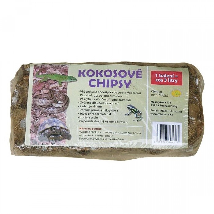 Čisté kokosové chipsy o velikosti 1 - 4 cm jsou vhodné jako podestýlka do polosuchých i vlhkých terárií. Výborně se hodí jako příměs do substátů pro orchideje. 100% přírodní materiál. Obsah balení cca 3 litry. prečítať celé