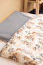 Pościel uszyta jest z miłego w dotyku muślinu i bawełny 100%. Komplet zawiera poszewkę na kołderkę i poduszkę. Całość będzie stanowić uroczy akcent w pokoiku dziecka. Poszewka na poduszkę jest zamykana na zakładkę i pasuje na wkłady o wymiarach 40×60 cm. Poszewka na kołdrę posiada zamknięcie na...