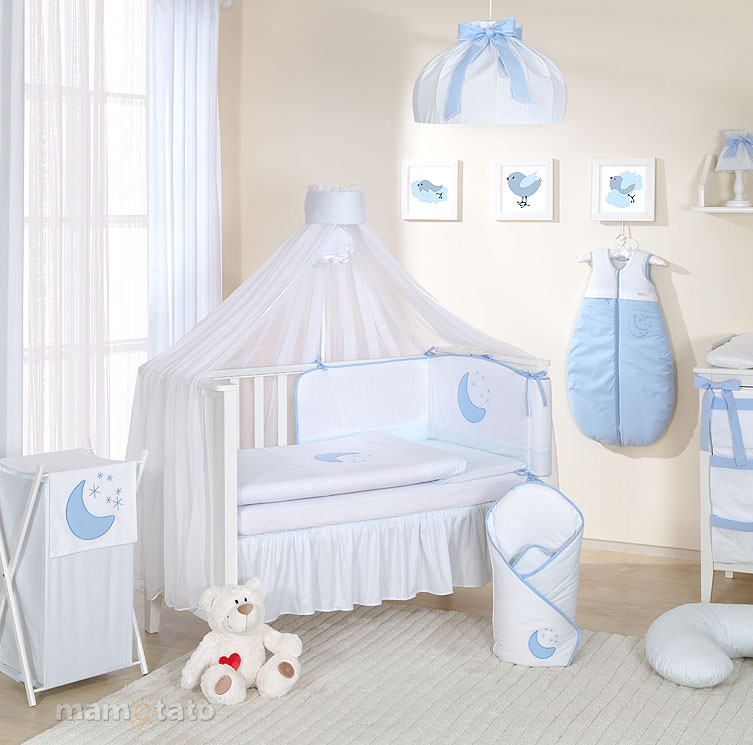 Moskytiéra na postýlku - bílá. modrá šerpa