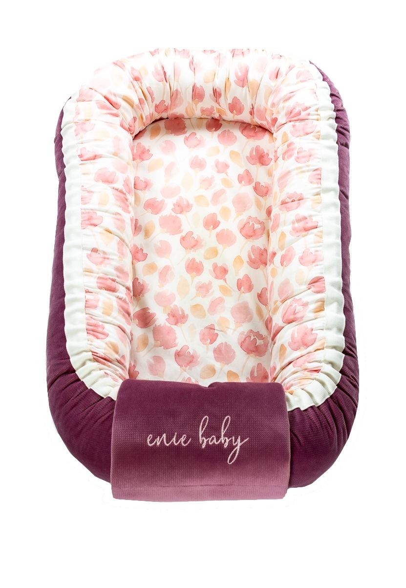 enie baby Hnízdečko do postýlky VELVET pink/pink leaves