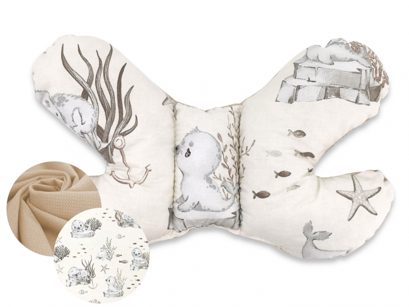 Oboustranný bavlněný polštářek Motýlek bavlna + Velvet, Lachtánek - béžová