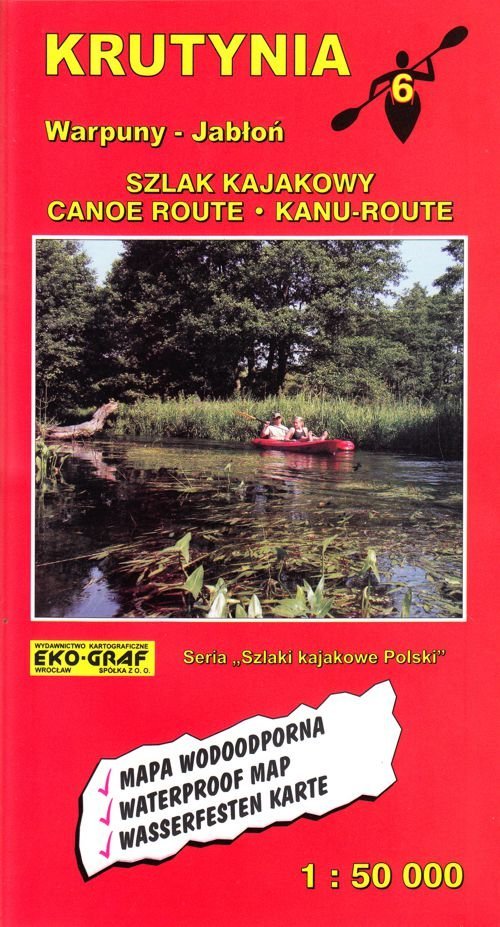 Szczegółowa mapa szlaku kajakowego na Krutyni, niezastąpiona przy spływach kajakowych. Mapa została wydrukowana na papierze syntetycznym ®polyart. Jest odporna na działanie wody oraz potarganie (z wyjątkiem uszkodzeń mechanicznych). Nie wierzysz? Włóż do wody!