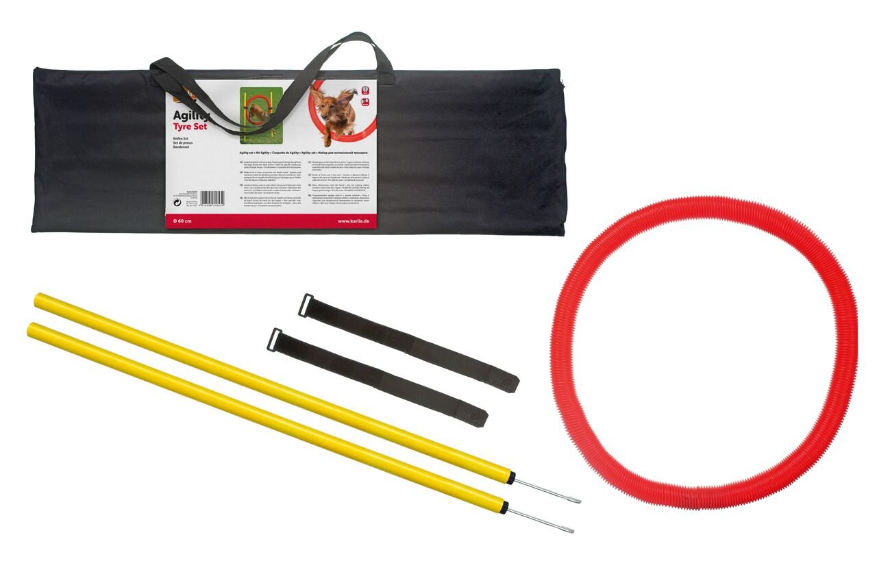 Fantastická venkovní sportovní a zábavná sada pro psy.Tyče - 2x svisle 100 cm, 1x prsten Ø60 cm, 2x držák, 2x připevnění do země. prečítať celé
