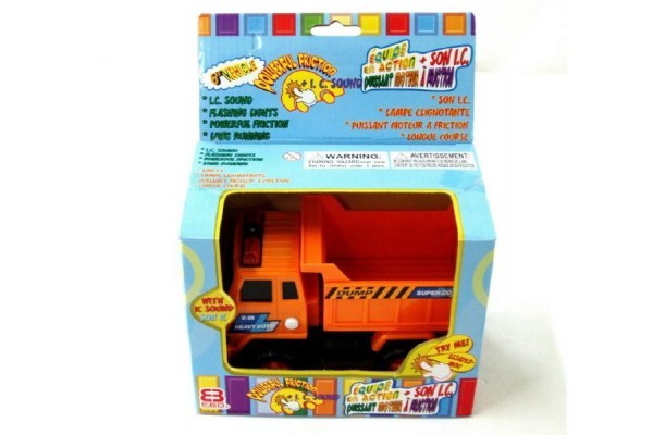 Auto stavební sklápěčka plast 14cm na baterie se zvukem se světlem v krabici 16x21x10cm
