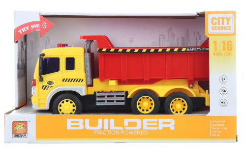 Auto sklápěčka na baterie. Po stisknutí tlačítek vydává zvuky a svítí. Rozměry auta cca 27 x 12 cm. Rozměry balení cca 32 x 19 x 12 cm. Napájení 3x AG13 (je součástí balení). Věk 3+ prečítať celé