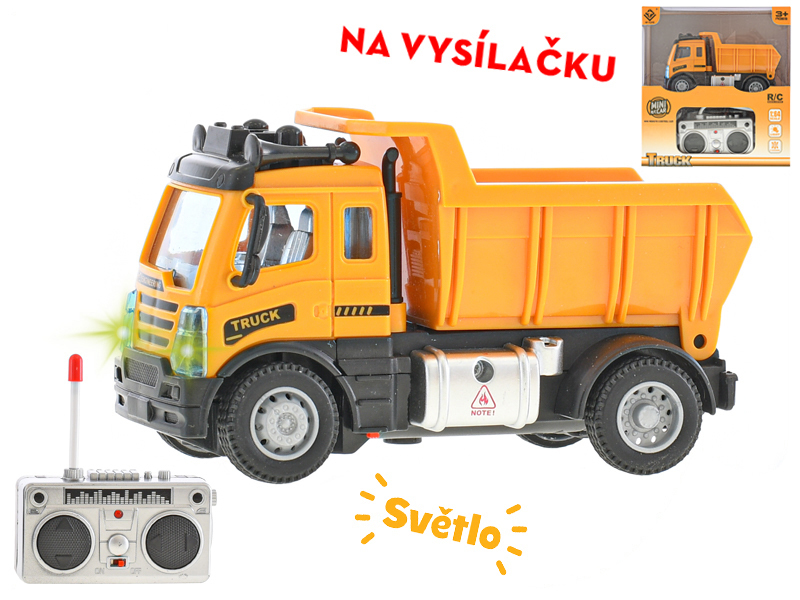 R/C auto stavební sklápěčka 12,5cm 1:64 plná funkce na baterie se světlem 27MHz v krabičce