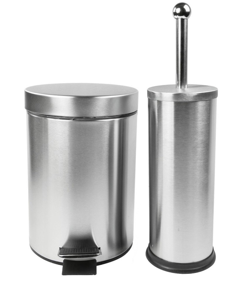 Moderní koupelnový set skládající se z pedálového koše a WC kartáče.Pedálový koš na drobný odpad s kapacitou 3 litry: ideální pro odhazování tamponů, hygienických vložek či jiného drobného odpadu.Vyrobeno z nerezové oceli: hygienické a odolné proti koroziTato volně stojící koupelnová sada s...