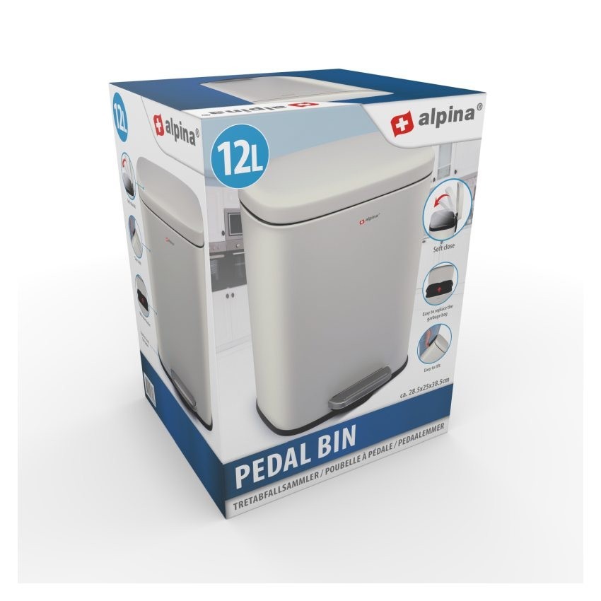 Ať už v koupelně nebo v kuchyni tento odpadkový koš se díky svému jednoduchému, ale elegantnímu designu skvěle hodí do každé místnosti. Má kapacitu cca 12 litrů. Plastová vložka usnadňuje vyprazdňování a čištění kbelíku. Nožní pedál umožňuje otevřít koš bez námahy, aniž byste se museli ohýbat. Mechanismus měkkého zavírání zabraňuje hlasitému bouchnutí. Rozměry: 28,6x25,2x38,4 cm.