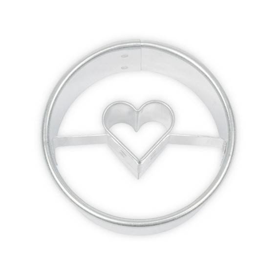Vykrajovátko na cukroví ve tvaru kolečka průměrem 4 cm a srdíčkem uprostřed. prečítať celé