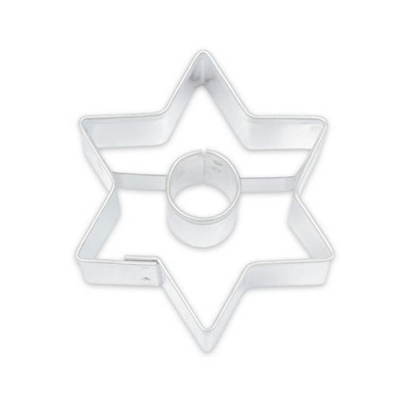 Vykrajovátko cukroví ve tvaru hvězdy s kolečkem uprostřed. prečítať celé