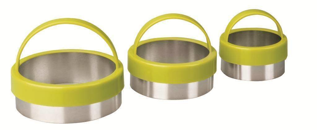 Praktická kulatá vykrajovátka s hladkou hranou, která jsou opatřena velice přínosným madlem. Sada tří kusů. prečítať celé