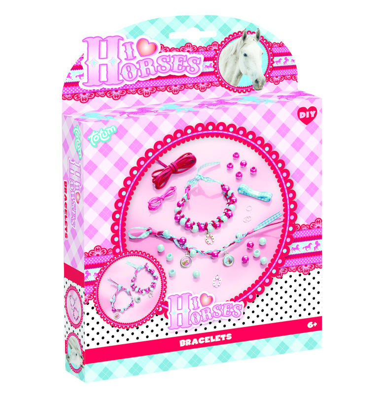 KONĚ - výroba náramků pro milovníky koní. kombinace platení a navlékání , dává možnost vyniknout šikovným a kreativním parádnicím od 6 let.Vynikající hračka pro rozvoj manuální zručnosti. Vše potřebné k výrobě najdete uvnitř baleníBalení obsahuje: stuhu, 2 šňůrky, 3 kovová kolečka, přívěsky, korálky a kreslený návod na použití.Vhodné pro děti od 6 let.Rozměry: 17,5 x 24,5 x 3,5cm.