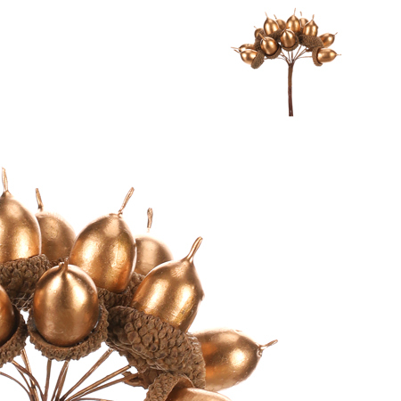Umělé přízdoby v podobě pozlacených žaludů na drátkách, budou skvělým dekoračním doplňkem pro nejrůznější typy vánoční výzdoby. Díky tenkému a ohebnému drátku, můžete jednoduše připevňovat tyto umělé plody dubů na místo určení. V jednom balení najdete rovnou 72 kusů žaludů stejné barvy. Sami o sobě až tak nevyniknou, ale společně s dalšími ozdobnými prvky, můžete díky nim vytvářet vlastníma rukama nádherné, pestrobarevné vánoční aranže.