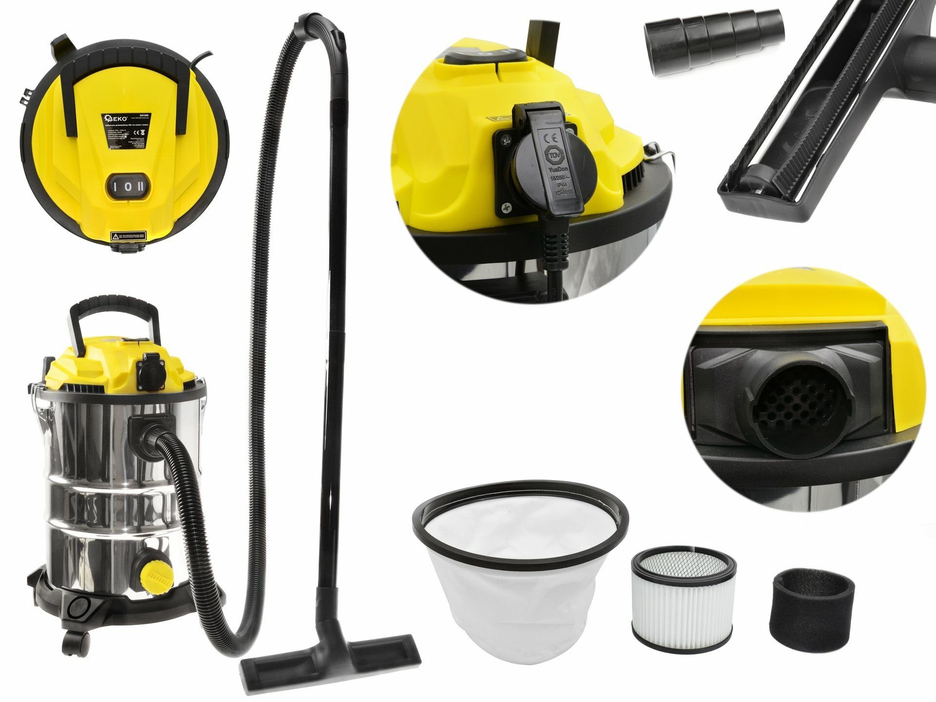Mokrosuchý průmyslový vysavač 25L se zásuvkou + příslušenství GEKO