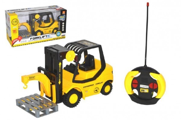 Vozík vysokozdvižný RC 30cm plast na dálkové ovládání na baterie se světlem v krabici 40x22x15cm