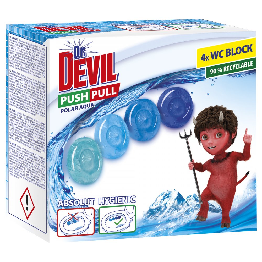Dr. DEVIL PUSH PULL bezkošíkové hygienické wc bloky Polar Aqua 4x20g