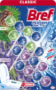 Bref Power Aktiv WC blok s vůní borovice & levandule a o + 50 % vyšším účinkem proti vodnímu kameni prečítať celé