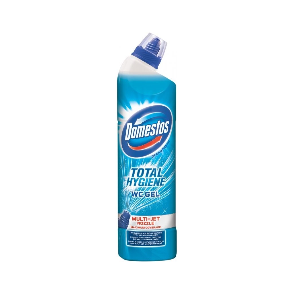 Domestos Total Hygiene - gel do WC - 700ML domestos je dezinfekční wc gel vhodný pro každodenní použití. Jeho účinné složení zabíjí bakterie, čistí a osvěžuje toaletu až na několik hodin.Balení s bezpečnostním víčkem 700ML NebezpečíMůže být korozivní pro kovy.Způsobuje těžké poleptání kůže a poškození očí