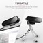 - Universal placement: clip onto monitor, place on desk or attach to the included tripod stand