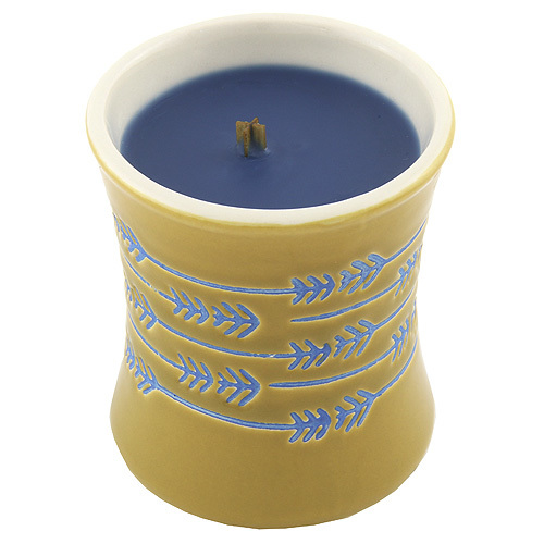 Svíčka keramická oválná váza WoodWick Džínovina, 142 g