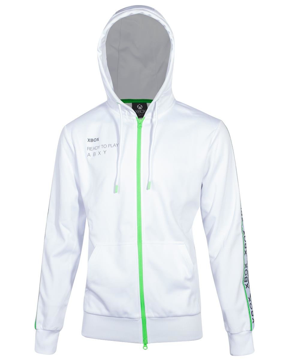 Atraktivní bílá pánská mikina s kapucí a zipem. Na přední straně mikiny je vyzobrazený nápis XBOX a na zadní straně logo.