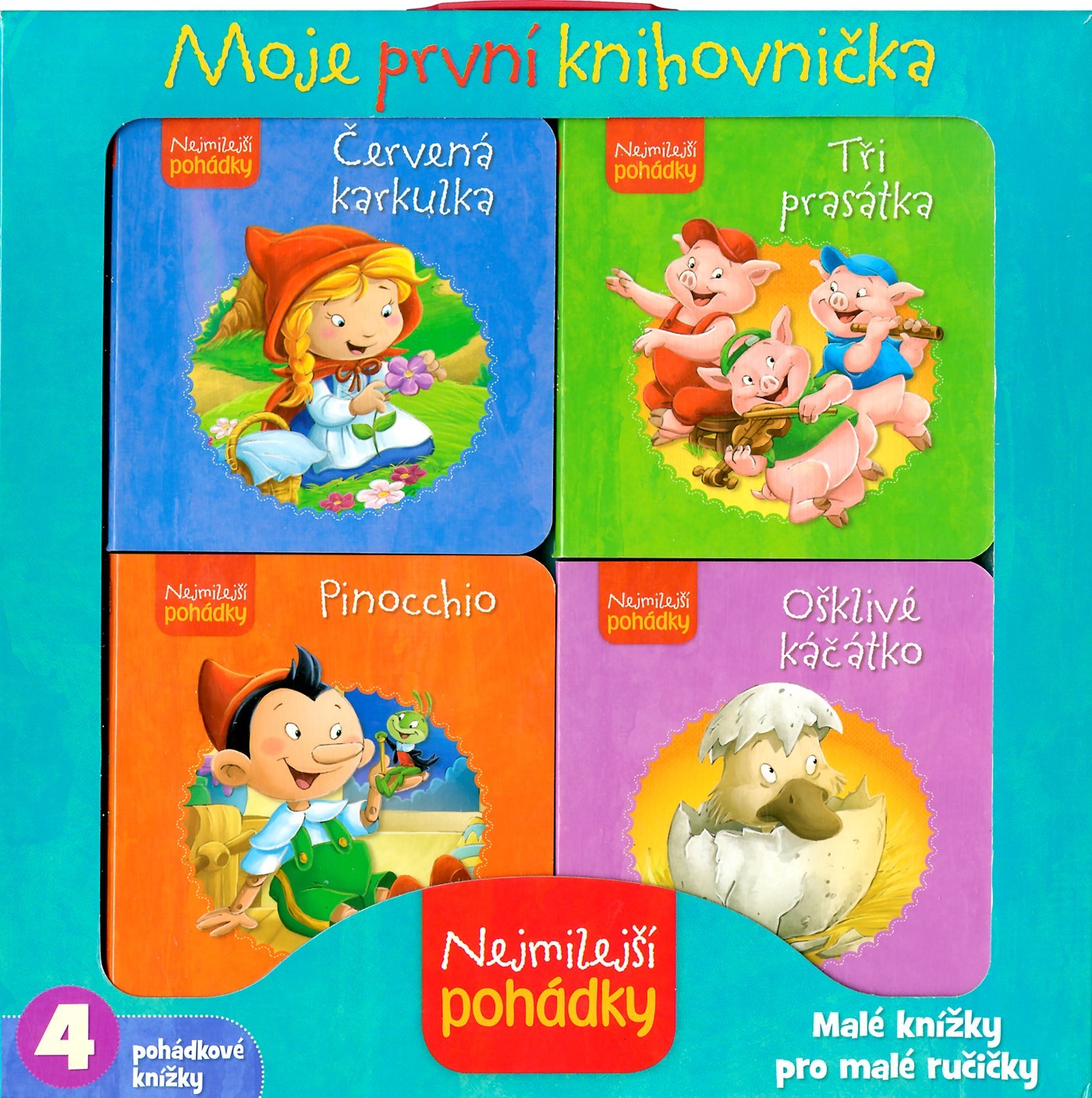 Ve světě pohádek se setkáváme s dobráky i padouchy, se statečnými i zbabělci, s pracovitými i lenochy, ale všechny kouzelné příběhy mají jedno společné. Jsou laskavé, přinášejí ponaučení a vždy v nich zvítězí dobro nad zlem. Čtyři malé, krásně ilustrované knížky jsou uložené v praktické krabici s uchem na nošení.