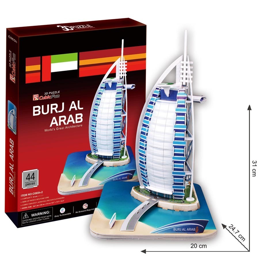 3D puzzle - stavebnice Burj Al Arab je vyrobená ze speciálního materiálu - asi 3mm silné pěny, potažené laminovaným potištěným papírem. Dodáváno v nesloženém tvaru, balené do fólie, kde jednotlivé díly jednoduše vymáčknete dle přiloženého návodu. Pěnové 3D puzzle nemusíte lepit lepidlem, lze je...