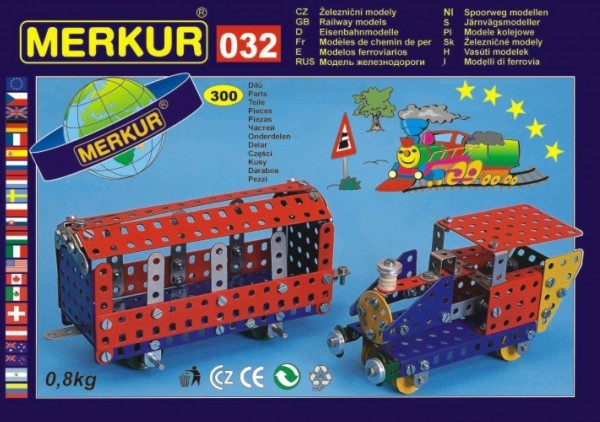 Stavebnica MERKUR 032 Železničné modely 10 modelov 300ks v krabici 36x27x3cm