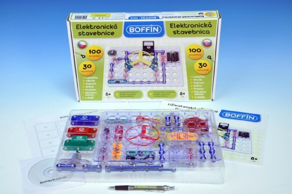 Stavebnice Boffin 100 elektronická 100 projektů na baterie 30ks v krabici