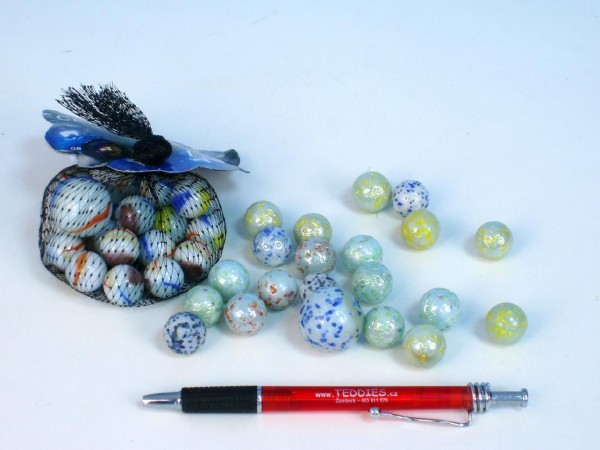 Kuličky skleněné 1,6cm 130g; 5 druhů; 20+1ks v síťce
