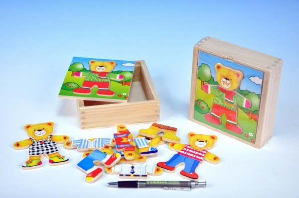 Šatník medvěd dřevo asst 2 druhy 18ks v dřevěné krabičce od 12 měsíců