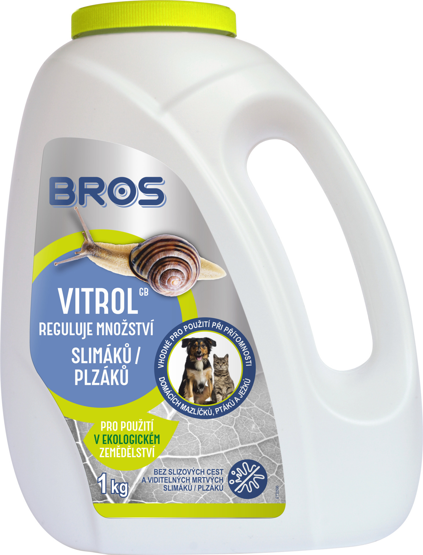 Bros - VITROL na slimáky 1 kg je spoľahlivý moluskocíd, ktorý vám pomôže ochrániť vaše rastliny pred škodlivými slimákmi, plzákmi a slimákmi veľkými (hlemýžďmi). Už nemusíte riešiť nechutné stopy slizu a zničené výpestky - tento granulát účinne zastaví ožieranie rastlín a postará sa o zdravšiu a krajšiu záhradu.
