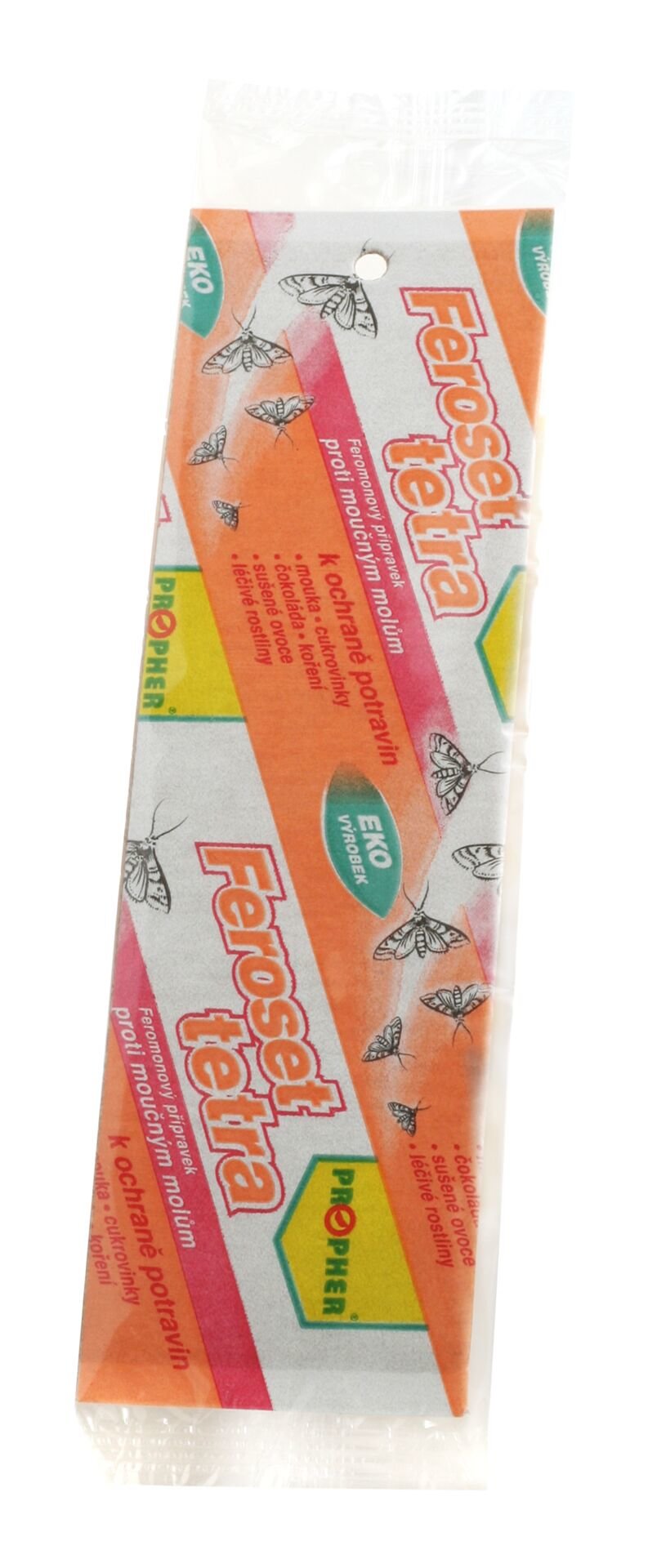 Popis a použití:Feroset tetra slouží k signalizaci výskytu zavíječů Pyralidae, jejichž housenky jsou významnými škůdci potravin rostlinného původu. Je ekologicky naprosto neškodný - neobsahuje žádné insekticidy. Je určen pro domácí spižírny, obchody s potravinami, mlýny, pekárny.Dávkování: