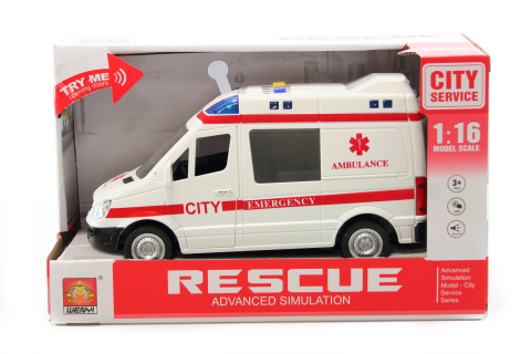 Plastová sanitka na baterie (3X AG13) - jsou součastí balení. Auto po stisknutí tlačítek na střeše svítí a vydává zvuky. Má otevírací dveře. Rozměry auta cca 21 x 10 cm. Věk 3+ prečítať celé