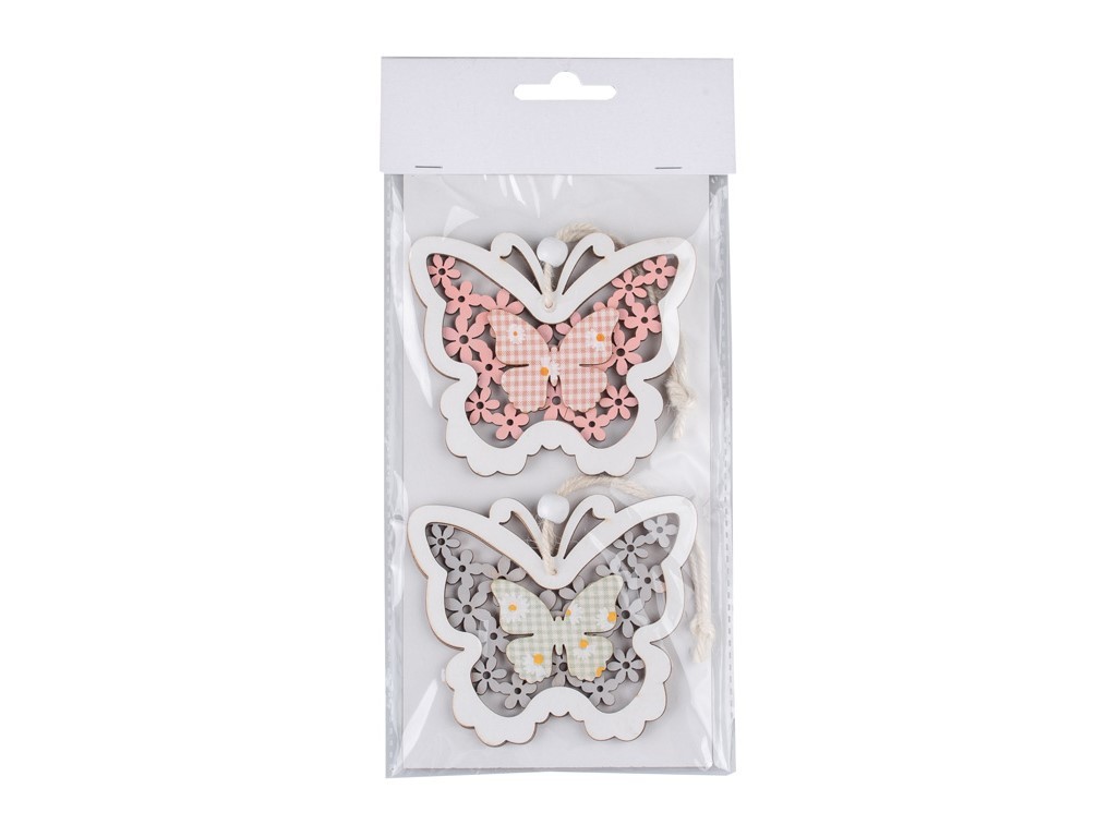 Závěs dřevo 2ks 95x85mm motýli mix, barevná